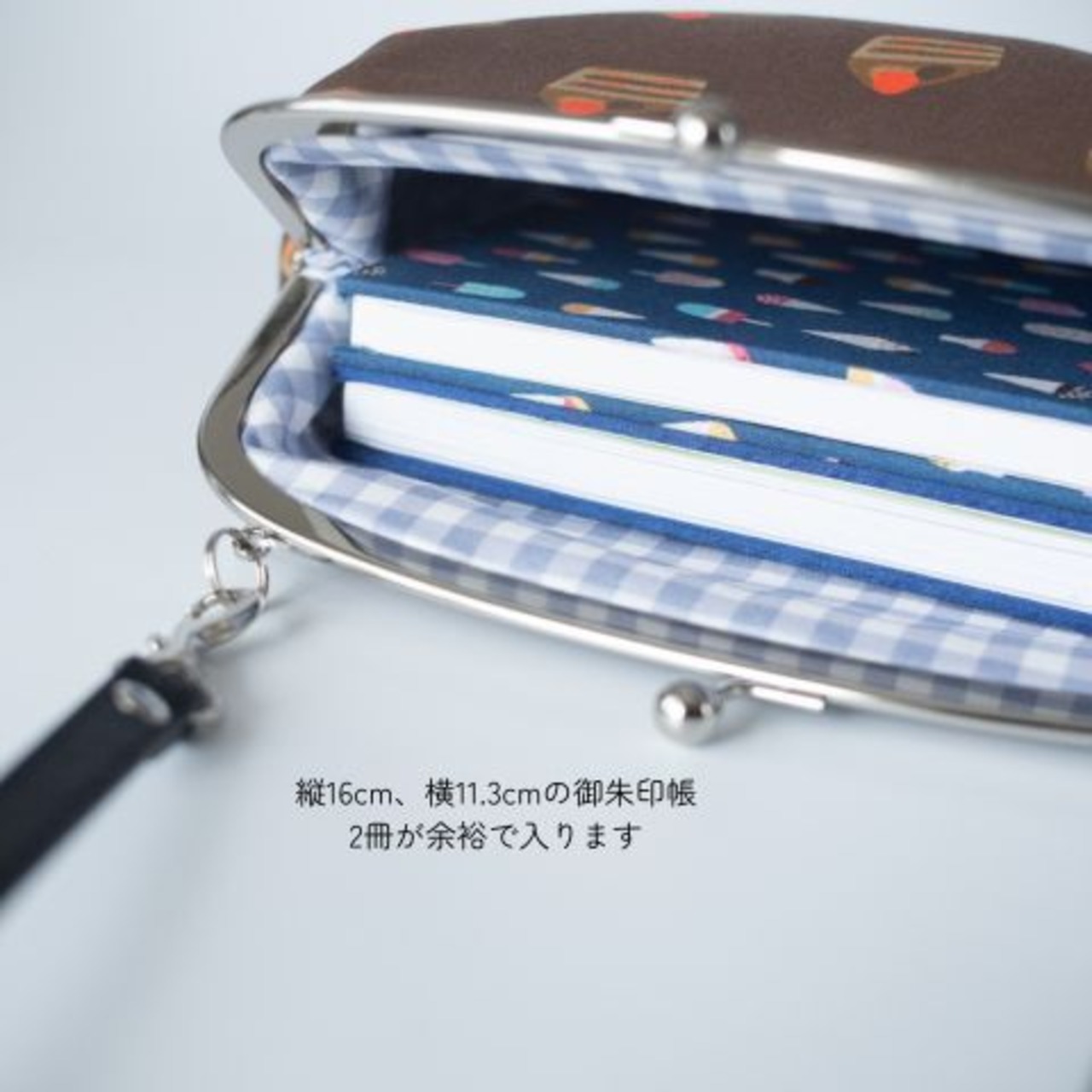 スピ活に御朱印帳が入るがま口ショルダーバッグ|チョコレートケーキ|北欧風