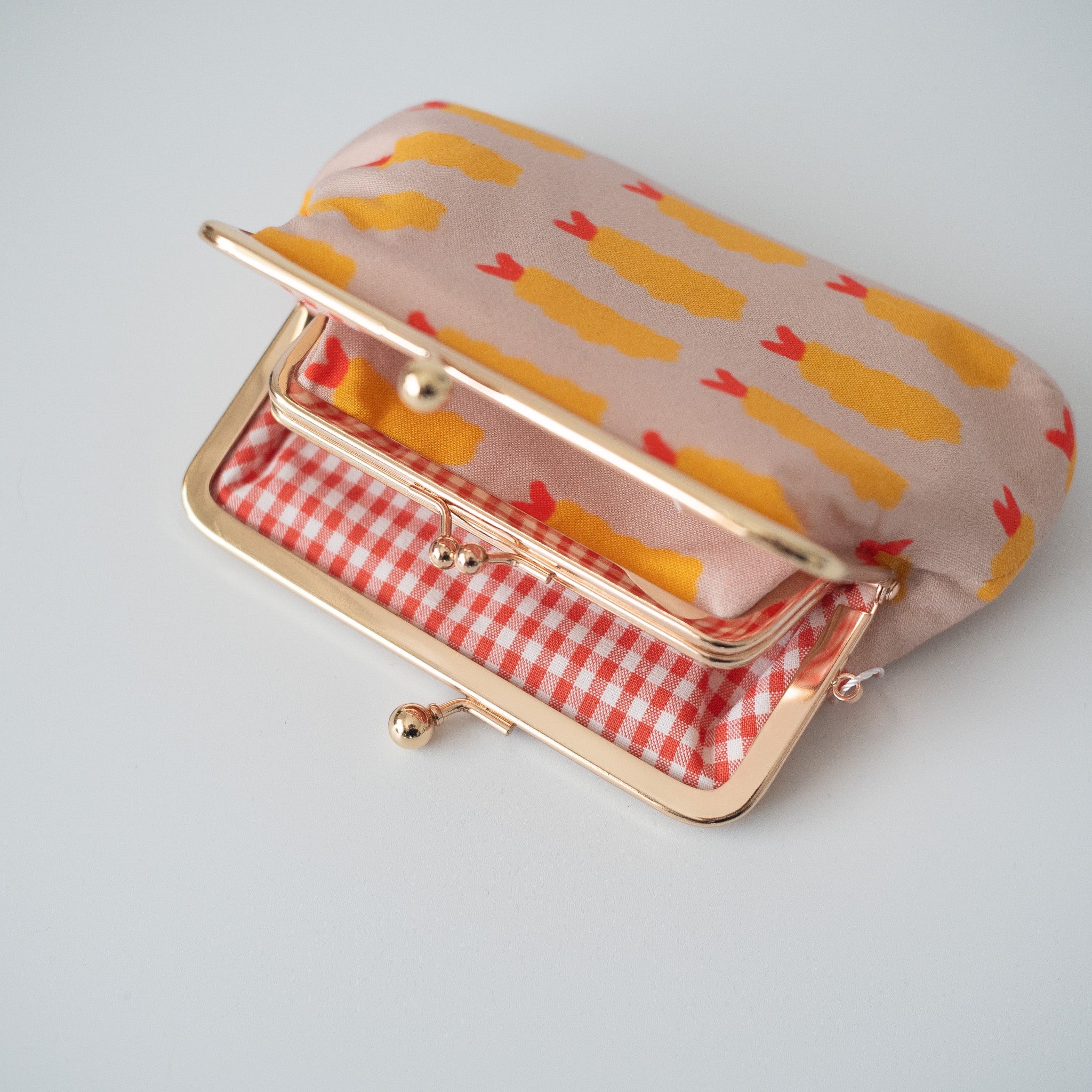 外布は賑やかなエビフライ柄のシーチング生地